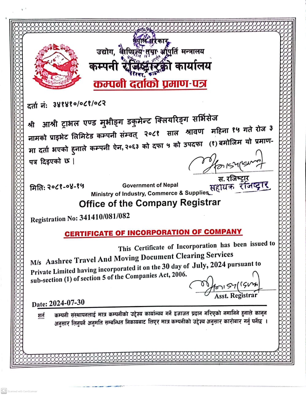 Certificate Of Incorporation of Company